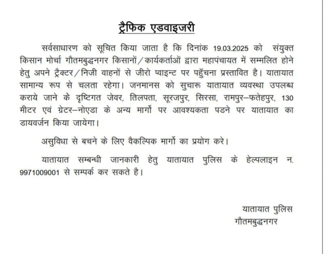 ग्रेटर नोएडा Traffic Advisory: संयुक्त किसान मोर्चा के चलते कई रास्तों में बदलाव, देखे ट्रैफिक एडवाइजरी By ten_hindi On Mar 19, 2025 Share Traffic Advisory: संयुक्त किसान मोर्चा के चलते कई रास्तों में बदलाव. Discover more from टेन न्यूज हिंदी Subscribe to get the latest posts sent to your email. Type your email… Subscribe Share FacebookTwitterGoogle+ReddItWhatsAppPinterestईमेल