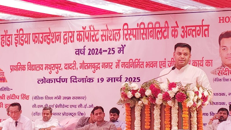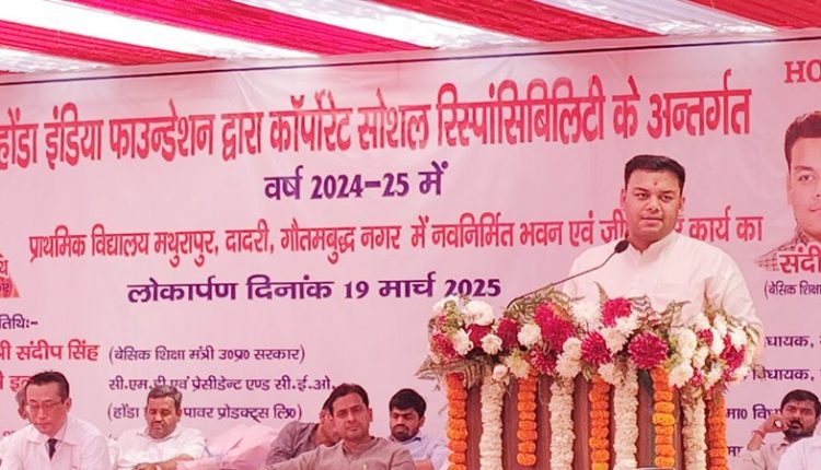 ग्रेटर नोएडा, (20 मार्च 2025): उत्तर प्रदेश सरकार शिक्षा के क्षेत्र में ऐतिहासिक बदलाव लाने के संकल्प के तहत प्रदेश के परिषदीय विद्यालयों को आधुनिक और अत्याधुनिक सुविधाओं से लैस कर रही है। इसी क्रम में मंगलवार, 19 मार्च को ग्रेटर नोएडा के मथुरापुर, दादरी में हाईटेक प्राथमिक विद्यालय के नवनिर्मित भवन का लोकार्पण किया गया। इस अवसर पर बेसिक शिक्षा राज्यमंत्री (स्वतंत्र प्रभार) संदीप सिंह ने कहा कि प्रधानमंत्री नरेंद्र मोदी के ‘विकसित भारत’ के विजन को साकार करने के लिए मुख्यमंत्री योगी आदित्यनाथ के नेतृत्व में प्रदेश के विद्यालयों का अभूतपूर्व कायाकल्प किया जा रहा है। उन्होंने यह भी कहा कि भारत विश्वगुरु बनने की दिशा में तेजी से आगे बढ़ रहा है।