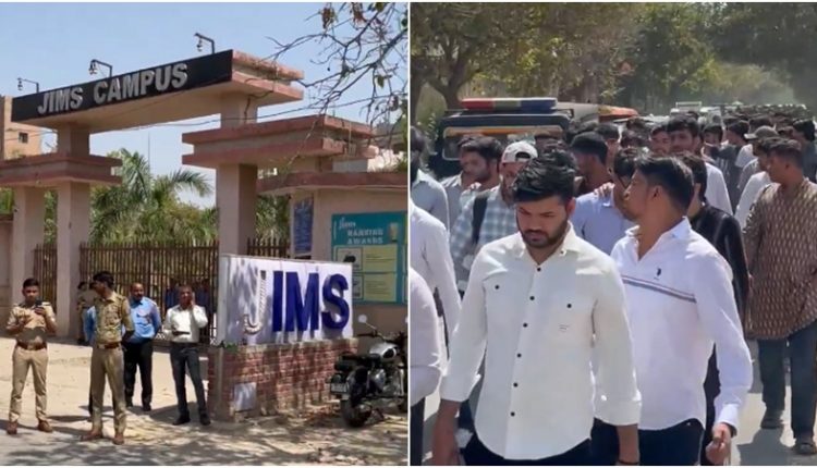 JIMS कॉलेज के बाहर सपा छात्र सभा का हंगामा, आत्महत्या मामले में न्याय की मांग