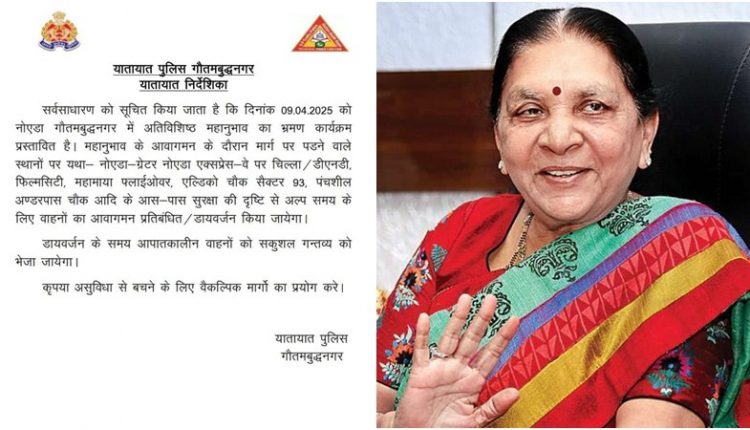 राज्यपाल के आगमन के दौरान सुरक्षा और सुगम यातायात व्यवस्था बनाए रखने के लिए यातायात पुलिस गौतम बुद्ध नगर ने एक निर्देश जारी किया है। इस दौरान नोएडा–ग्रेटर नोएडा एक्सप्रेसवे, फिल्म सिटी, डीएनडी, महामाया फ्लाईओवर, एल्डिको चौक, सेक्टर-93, पंचशील अंडरपास चौक और आसपास के क्षेत्रों में कुछ समय के लिए ट्रैफिक डायवर्जन लागू रहेगा।