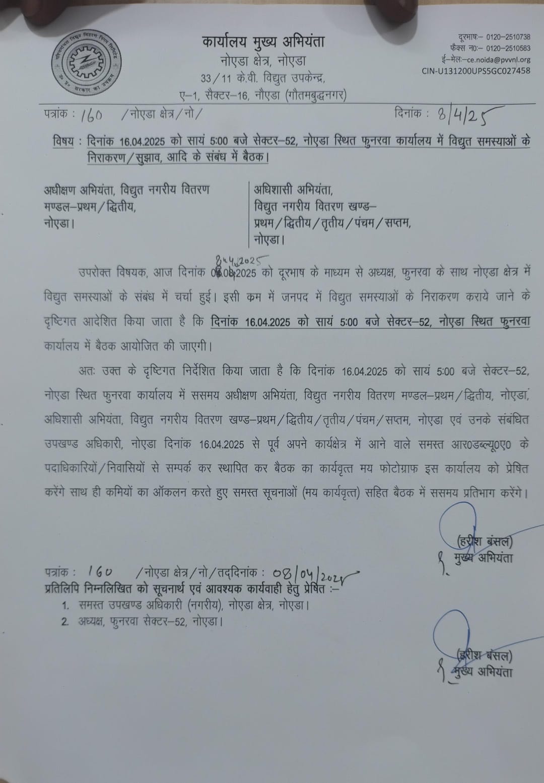 यह बैठक नोएडा वासियों की लंबे समय से चल रही बिजली कटौती, फाल्ट और वोल्टेज की समस्याओं पर अंकुश लगाने की दिशा में एक महत्वपूर्ण कदम मानी जा रही है। स्थानीय निवासियों को उम्मीद है कि इस बैठक से बिजली आपूर्ति की स्थिति में सुधार आएगा और जनसुविधा को प्राथमिकता दी जाएगी।