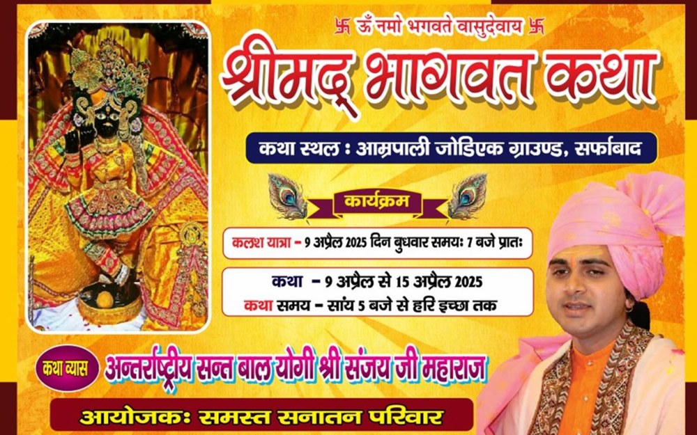 नोएडा (09 अप्रैल, 2025): नोएडा सेक्टर-119 स्थित आम्रपाली जुडिशियल पार्क में श्रीमद् भागवत कथा का भव्य शुभारंभ बुधवार को कलश यात्रा के साथ हुआ। 9 अप्रैल से 15 अप्रैल तक चलने वाली इस कथा का वाचन अंतरराष्ट्रीय बाल योगी संजय जी महाराज द्वारा किया जाएगा। प्रतिदिन कथा का समय शाम 5 बजे से रात 9 बजे तक तय किया गया है।