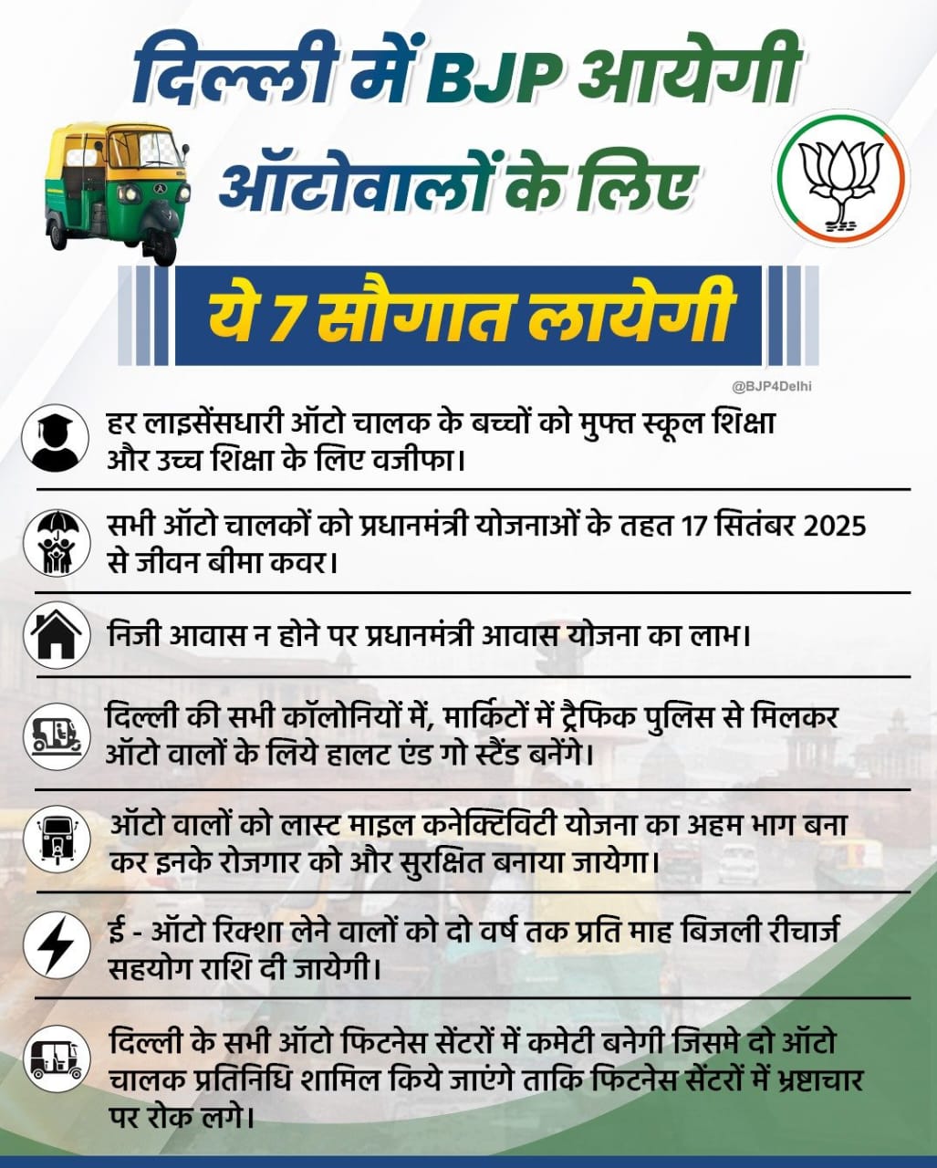 2. जीवन बीमा: सभी ऑटो चालकों को प्रधानमंत्री योजनाओं के तहत 17 सितंबर 2025 से जीवन बीमा कवर प्रदान किया जाएगा।