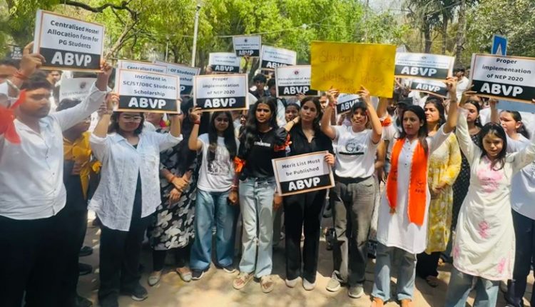 छात्र हितों के लिए सड़कों पर उतरी ABVP, डीयू प्रशासन के खिलाफ़ जोरदार प्रदर्शन