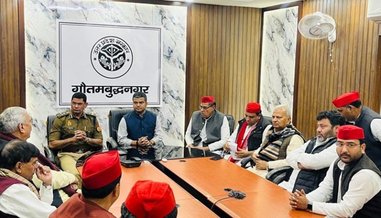 प्रतिनिधिमंडल में लोकसभा सांसद नरेश उत्तम पटेल, हरेंद्र मलिक, लालजी वर्मा, विधायक कमाल अख्तर, गौतम बुद्ध नगर के जिला अध्यक्ष सुधीर भाटी, प्रदेश सचिव फकीरचंद नागर, सुनील चौधरी, पूर्व जिला अध्यक्ष वीर सिंह यादव, डॉ. महेंद्र नागर, सुनील भाटी, डॉ. आश्रय गुप्ता, गजराज नागर, इंद्र प्रधान, नरेंद्र नागर, सुधीर तोमर, नोएडा महानगर से रोहित यादव, सौरभ चौहान, बिल्लू सैफी और मयंक जैसे प्रमुख नेता शामिल थे।
