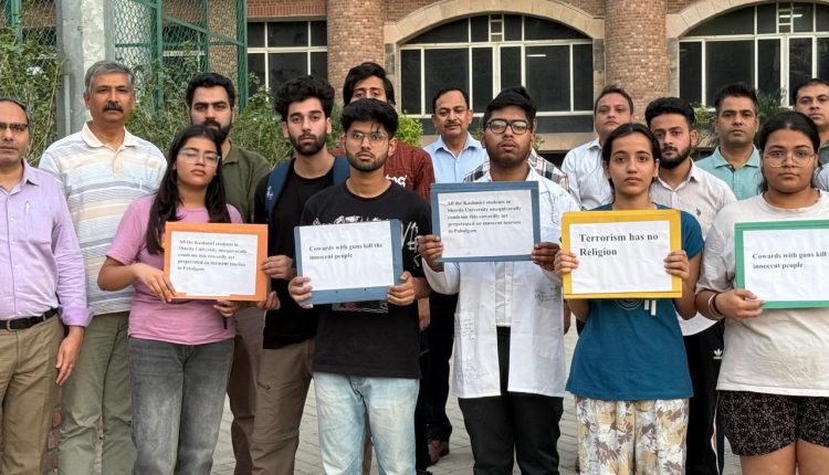शारदा विश्वविद्यालय में पहलगाम में आतंकवादी हमले के विरोध में कश्मीरी छात्रों ने निकाला मार्च