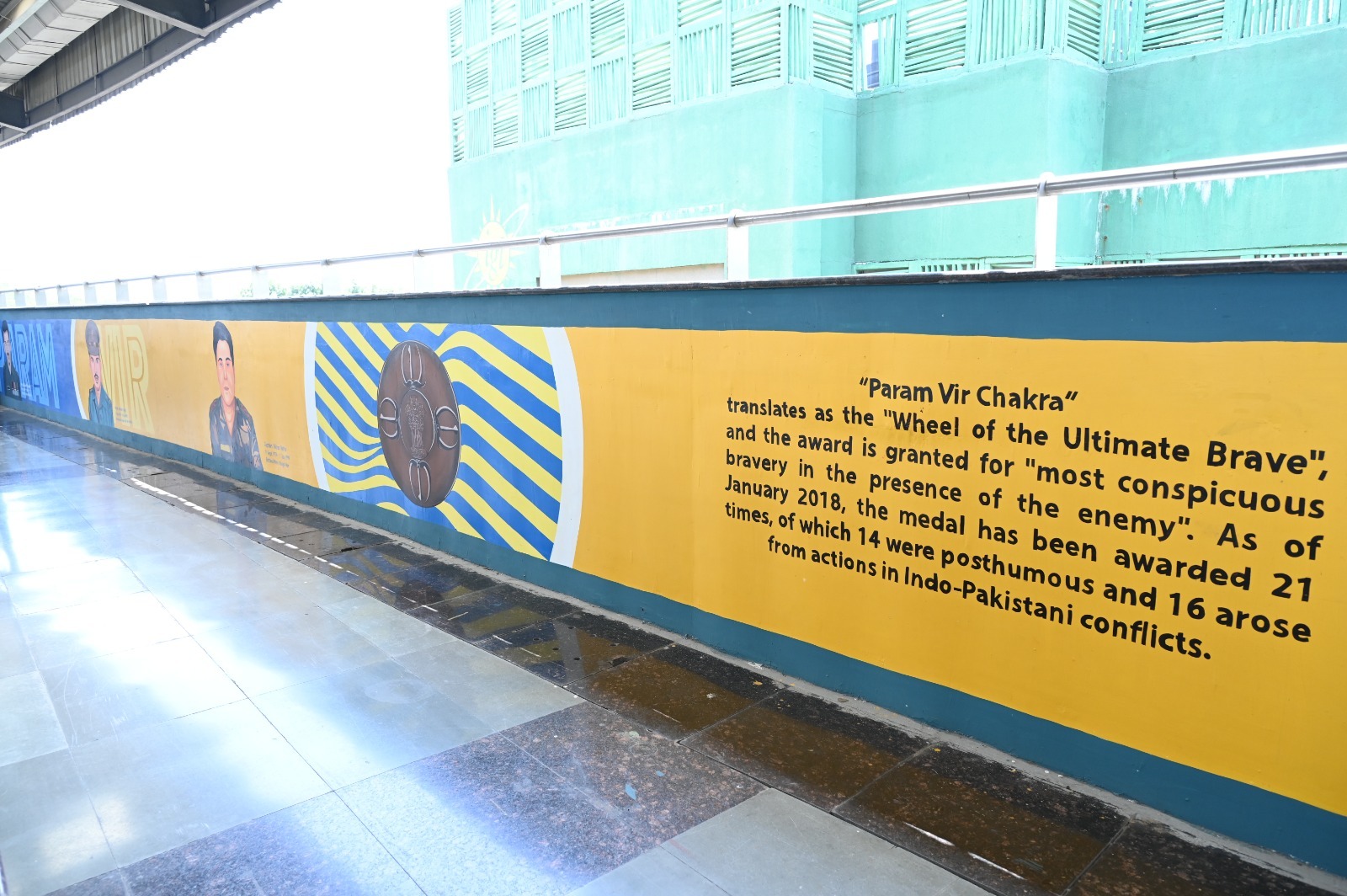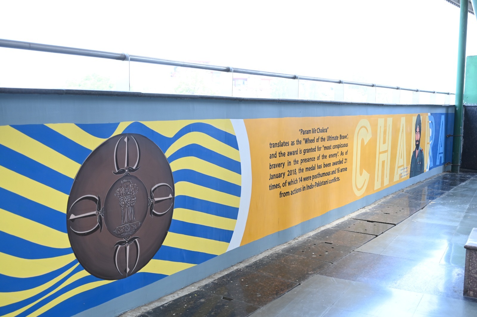 DMRC की इस पहल के तहत, स्टेशन की दीवार पर इन वीरों के सजीव चित्र बनाए गए हैं। इन चित्रों को कुशल कलाकारों की टीम ने बेहद बारीकी से तैयार किया है, जो इन योद्धाओं की बहादुरी, साहस और आत्मबलिदान को दर्शाते हैं। हर चित्र के साथ उस वीर योद्धा की संक्षिप्त जानकारी भी दी गई है, जिससे यात्री उनके जीवन और बलिदान को करीब से जान सकें।
