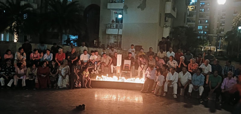 कैंडल मार्च का शुभारंभ सोसाइटी के मुख्य द्वार से हुआ, जो पूरे परिसर का एक चक्कर लगाते हुए सम्पन्न हुआ। इस दौरान सभी निवासी हाथों में जलती हुई मोमबत्तियाँ लेकर आतंकवाद के खिलाफ अपनी एकजुटता और दिवंगत आत्माओं के प्रति सम्मान व्यक्त करते दिखे। मार्च के पश्चात एक सामूहिक शोक सभा आयोजित की गई, जिसमें सभी निवासी अपने परिवारजनों सहित सम्मिलित हुए।