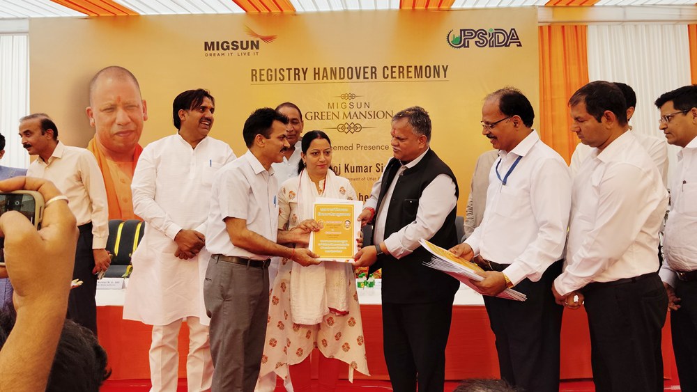 ग्रेटर नोएडा (28 अप्रैल 2025): ग्रेटर नोएडा के सूरजपुर क्षेत्र स्थित साइट-सी की मिगसन ग्रीन मेंशन सोसाइटी के निवासियों के लिए रविवार का दिन ऐतिहासिक बन गया। वर्षों से अपने घर के मालिक बनने का सपना देख रहे 36 फ्लैट खरीदारों को आखिरकार रजिस्ट्री दस्तावेज सौंपे गए, जिससे सोसाइटी में जश्न का माहौल छा गया। उत्तर प्रदेश के मुख्यमंत्री योगी आदित्यनाथ के मार्गदर्शन में सरकार फ्लैट खरीदारों को राहत पहुंचाने के सतत प्रयास कर रही है और इसी दिशा में यह महत्वपूर्ण कदम उठाया गया।