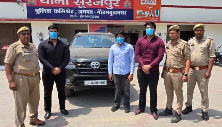 मामले की जांच करते हुए पुलिस ने तीन आरोपियों को गिरफ्तार किया है जिनकी पहचान अंशुल यादव (22 वर्ष), निवासी हजरतपुर वाजिदपुर, सुमित यादव (24 वर्ष), निवासी सेक्टर-48, थाना सेक्टर-49 नोएडा, और प्रिंस यादव (22 वर्ष), निवासी बहलोलपुर, थाना सेक्टर-63, नोएडा के रूप में हुई है। पुलिस ने इनके कब्जे से घटना में प्रयुक्त काली रंग की फॉर्च्यूनर कार (यूपी 16 डीएन 8887) भी बरामद की है।