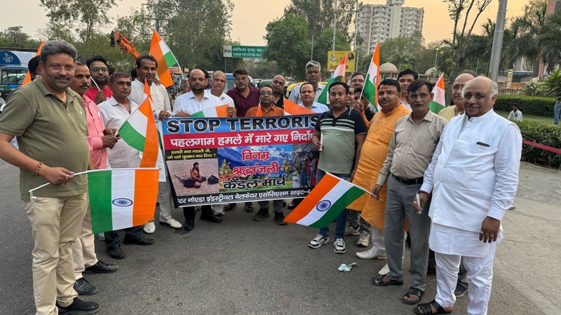 आतंकी हमले के विरोध में इंडस्ट्रियल वेलफेयर एसोसिएशन ने निकाला कैंडल मार्च