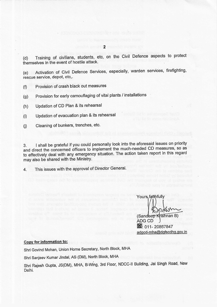 पत्र में यह भी स्पष्ट किया गया है कि यह अभ्यास किसी घबराहट का कारण नहीं है, बल्कि यह शांति काल में तैयार रहने की एक सख्त प्रक्रिया है। नागरिकों से अपेक्षा की गई है कि वे अफवाहों पर ध्यान न दें और प्रशासन द्वारा जारी दिशानिर्देशों का पालन करें। ड्रिल की सूचना पहले से प्रचारित की जा रही है ताकि कोई भ्रम या भय न फैले। इसे राष्ट्र की निष्क्रिय रक्षा नीति का अभिन्न हिस्सा माना गया है, जिसका मकसद किसी भी अप्रत्याशित संकट की स्थिति में देश को सामूहिक रूप से तैयार रखना है।