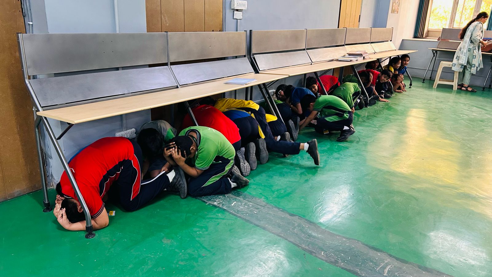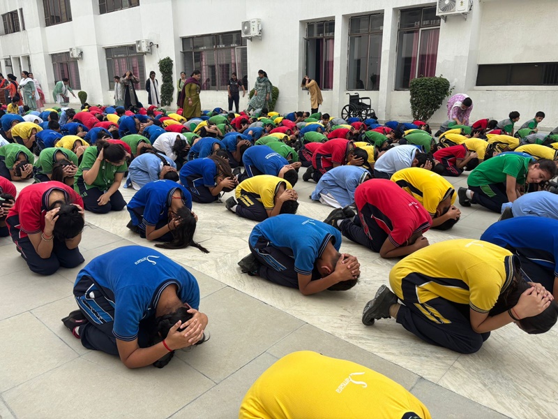 ड्रिल के दौरान जैसे ही संकेत दिया गया, सभी छात्र-छात्राएं तत्काल अपनी-अपनी डेस्क के नीचे छिप गए और अपने सिर को हाथों से ढक लिया, जिससे यह दर्शाया गया कि वे आपदा की स्थिति में आवश्यक सुरक्षा उपायों को समझते हैं और उन्हें व्यवहार में ला सकते हैं। इससे पूर्व आयोजित प्रार्थना सभा में विद्यालय की प्रधानाचार्या कैप्टन प्रवीन रॉय जी ने विद्यार्थियों को आपातकालीन परिस्थितियों में अपनाए जाने वाले आवश्यक सुरक्षा उपायों की विस्तृत जानकारी दी। उन्होंने यह भी बताया कि ऐसी परिस्थितियों में किन जरूरी वस्तुओं को साथ रखना चाहिए।