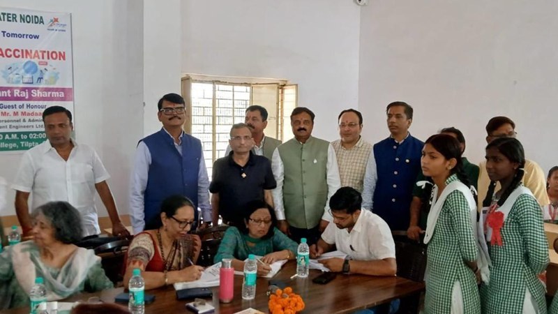 ग्रेटर नोएडा (08 मई 2025): रोटरी क्लब ऑफ़ ग्रीन ग्रेटर नोएडा द्वारा समाज सेवा के क्षेत्र में एक और महत्वपूर्ण पहल करते हुए भारतीय आदर्श वैदिक बालिका इंटर कॉलेज, तिलपता, ग्रेटर नोएडा में निःशुल्क सर्वाइकल कैंसर वैक्सीनेशन कैम्प का आयोजन किया गया। इस अभियान के तहत 257 बालिकाओं को सर्वाइकल कैंसर से बचाव के लिए निःशुल्क वैक्सीन लगाई गई।