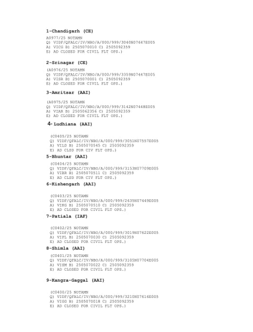 BreakingNews | किशनगढ़, भुंतर (कुल्लू) और लुधियाना को #NOTAM के तहत बंद किए गए हवाई अड्डों की सूची में शामिल किया गया