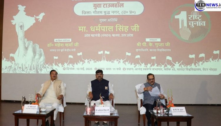 ग्रेटर नोएडा, (10 मई 2025): शारदा यूनिवर्सिटी, नॉलेज पार्क, ग्रेटर नोएडा में आज “एक राष्ट्र, एक चुनाव” विषय पर एक भव्य युवा टाउनहॉल सम्मेलन का आयोजन किया गया। इस विशेष कार्यक्रम के संयोजक पूर्व केंद्रीय मंत्री व गौतमबुद्ध नगर के सांसद डॉ. महेश शर्मा रहे, जबकि अध्यक्षता शारदा यूनिवर्सिटी के कुलाधिपति पी.के. गुप्ता ने की। कार्यक्रम में मुख्य अतिथि के तौर पर भारतीय जनता पार्टी के प्रदेश संगठन महामंत्री धर्मपाल सिंह उपस्थित रहे।