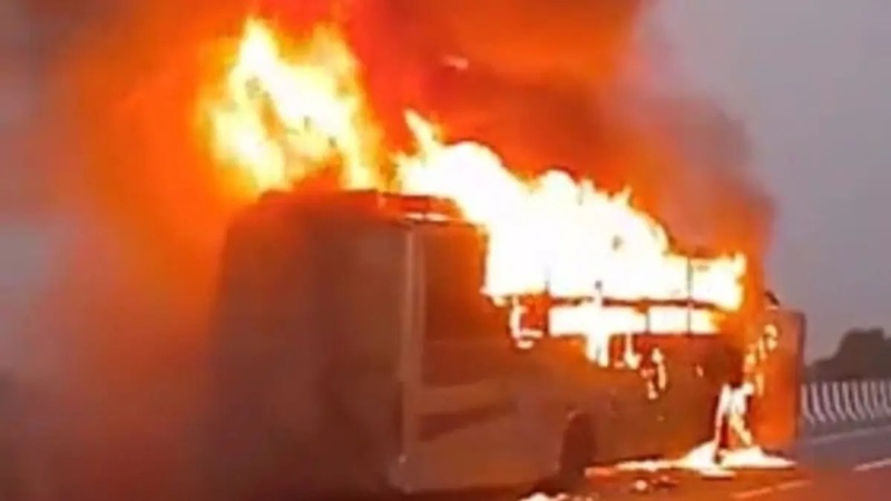 यह बस बिहार के बेगूसराय से दिल्ली के लिए निकली थी और लखनऊ के मोहनलालगंज क्षेत्र स्थित लखनऊ-रायबरेली रोड पर किसान पथ पर पहुंची थी, तभी बस में शॉर्ट सर्किट की वजह से अचानक आग लग गई। बस का नंबर UP17 AT 6372 बताया गया है। आग लगते ही बस में अफरा-तफरी मच गई। प्रत्यक्षदर्शियों के मुताबिक, ड्राइवर और कंडक्टर बस रोकने की बजाय मौके से कूदकर भाग निकले। इस दौरान बस एक किलोमीटर तक आग की लपटों में दौड़ती रही, जिससे यात्रियों को बाहर निकलने का समय ही नहीं मिल पाया।