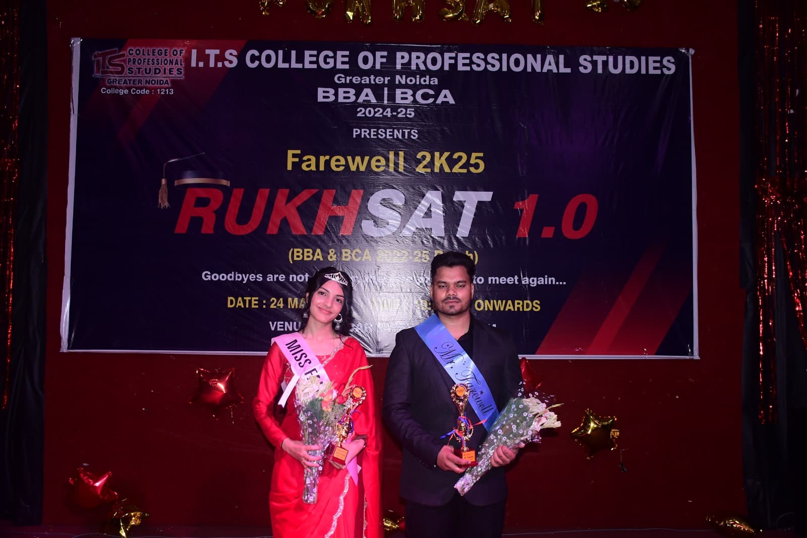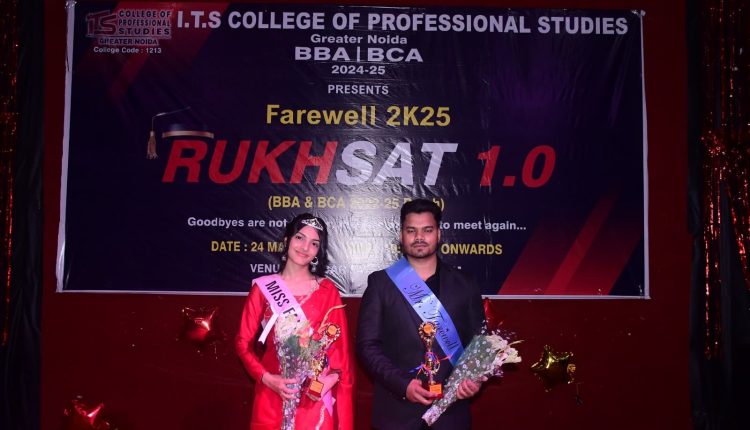 दिनाँक 24 मई 2025 को आई. टी. एस. कॉलेज ऑफ़ प्रोफेशनल स्टडीज, ग्रेटर नॉएडा में बीबीए|बीसीए के अंतिम वर्ष के छात्रों के लिए विदाई समारोह- रुखशत-1.0 का शानदार आयोजन किया गया। कार्यक्रम का शुभारंभ, संस्थान के प्रिंसिपल डॉ. दिलीप सिंह, डॉ. संजय यादव (डीन स्टूडेंट वेलफेयर), सभी विभागाध्यक्ष एवं शिक्षकों के द्वारा दीप प्रज्वलन एवं माँ सरस्वती की वंदना करते हुए हुआ।