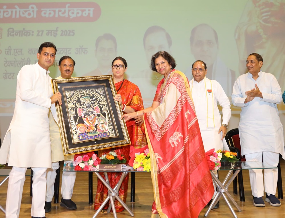 ग्रेटर नोएडा, (27 मई 2025): भारत की महान महिला शासिका और जनसेविका राजमाता अहिल्याबाई होलकर की 300वीं जयंती के अवसर पर जी.एल. बजाज एजुकेशनल इंस्टीट्यूशन्स, ग्रेटर नोएडा में एक भव्य समारोह का आयोजन किया गया। इस गौरवमयी अवसर पर पूर्व केंद्रीय मंत्री स्मृति ईरानी और गौतम बुद्ध नगर के सांसद डॉ. महेश शर्मा मुख्य अतिथि के रूप में उपस्थित रहे। दोनों विशिष्ट अतिथियों ने छात्र-छात्राओं को सेवा, सुशासन और त्याग के आदर्शों पर चलने का प्रेरक संदेश दिया।