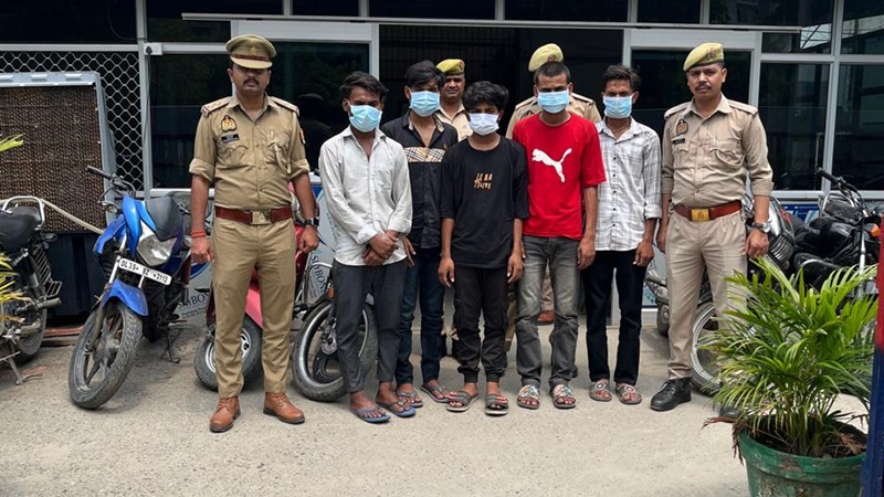 नोएडा (29 मई, 2025): थाना सेक्टर-113 नोएडा व सर्विलांस टीम ने संयुक्त कार्रवाई में दोपहिया वाहन चोरी करने वाले गिरोह का भंडाफोड़ किया है। 29 मई 2025 को पर्थला डूब क्षेत्र से 5 शातिर चोरों को गिरफ्तार किया गया, जिनके कब्जे से चोरी की 19 मोटरसाइकिलें और 2 स्कूटी बरामद की गई हैं।