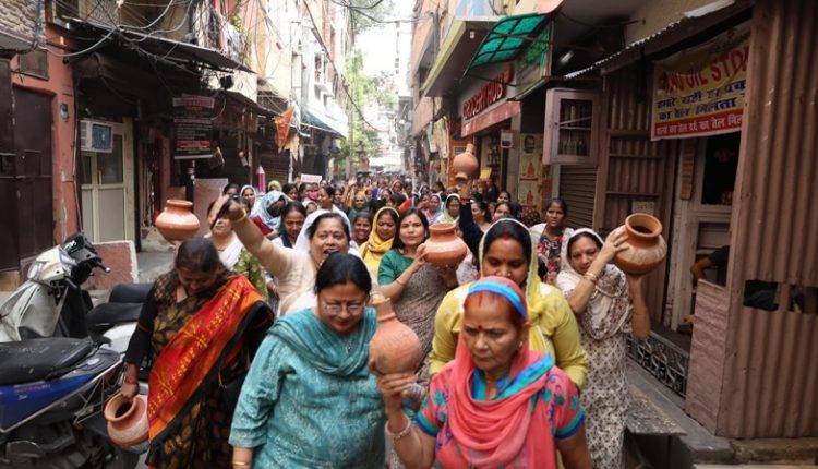 नई दिल्ली, (07 जून 2025): दिल्ली में साफ पानी की किल्लत को लेकर अब आम आदमी पार्टी की महिला विंग ने भाजपा सरकार पर सीधा हमला बोला है। शुक्रवार को तिमारपुर विधानसभा क्षेत्र के मलकागंज इलाके में AAP महिला इकाई ने मटका फोड़ प्रदर्शन कर भाजपा के खिलाफ जमकर नारेबाज़ी की।