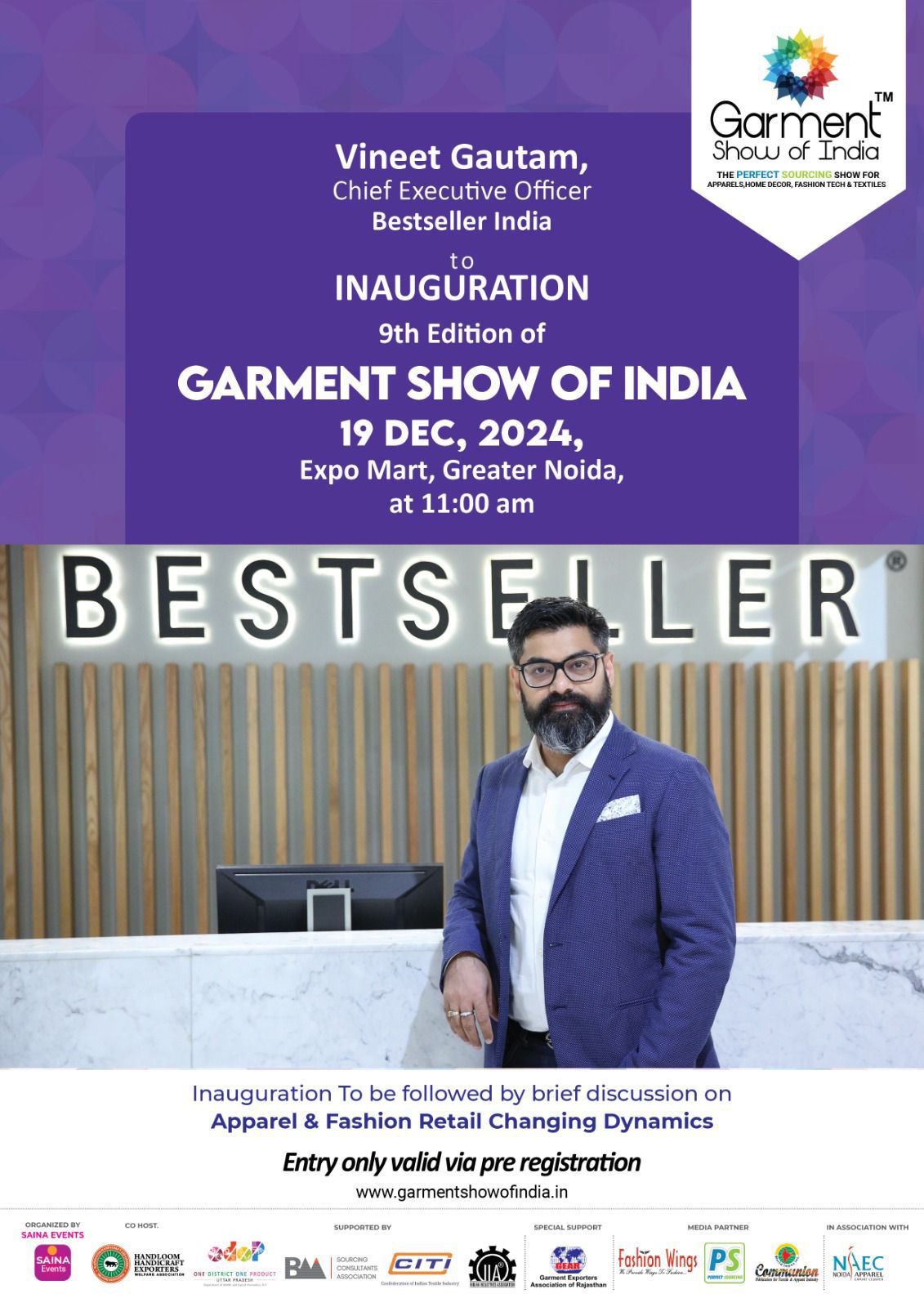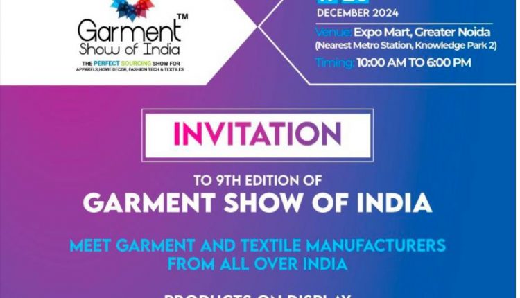 ग्रेटर नोएडा (19 दिसंबर 2024): ग्रेटर नोएडा के इंडिया एक्सपो मार्ट में गारमेंट शो ऑफ इंडिया (जीएसआई) के 9वें संस्करण का आयोजन 19-20 दिसंबर, 2024 को होने जा रहा है। यह आयोजन भारत के परिधान और फैशन उद्योग के प्रमुख दिग्गज उद्यमियों को एक मंच पर लाकर नए व्यापार अवसरों की राह खोलने का वादा करता है।
