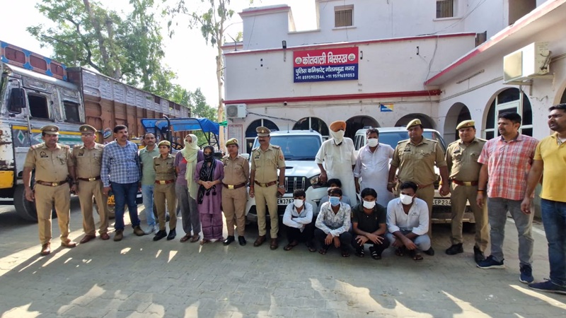 ग्रेटर नोएडा (19 जून 2025): थाना बिसरख पुलिस (Bisrakh Police Station)ने एक बड़ी कामयाबी हासिल करते हुए ट्रैक्टर-ट्रॉली और लोहे की लूट में शामिल एक संगठित गिरोह का पर्दाफाश कर दिया है। इस गिरोह में दो महिलाएं भी शामिल थीं। पुलिस ने कुल 07 पुरुष, 02 महिलाओं को गिरफ्तार किया है, जबकि 02 नाबालिगों को हिरासत में लिया गया है। पुलिस ने गिरोह के कब्जे से करीब 5 टन लोहा, एक ट्रैक्टर-ट्रॉली, दो स्कॉर्पियो गाड़ियां, एक ट्रक, 70,000 नकद और एक तमंचा बरामद किया है।