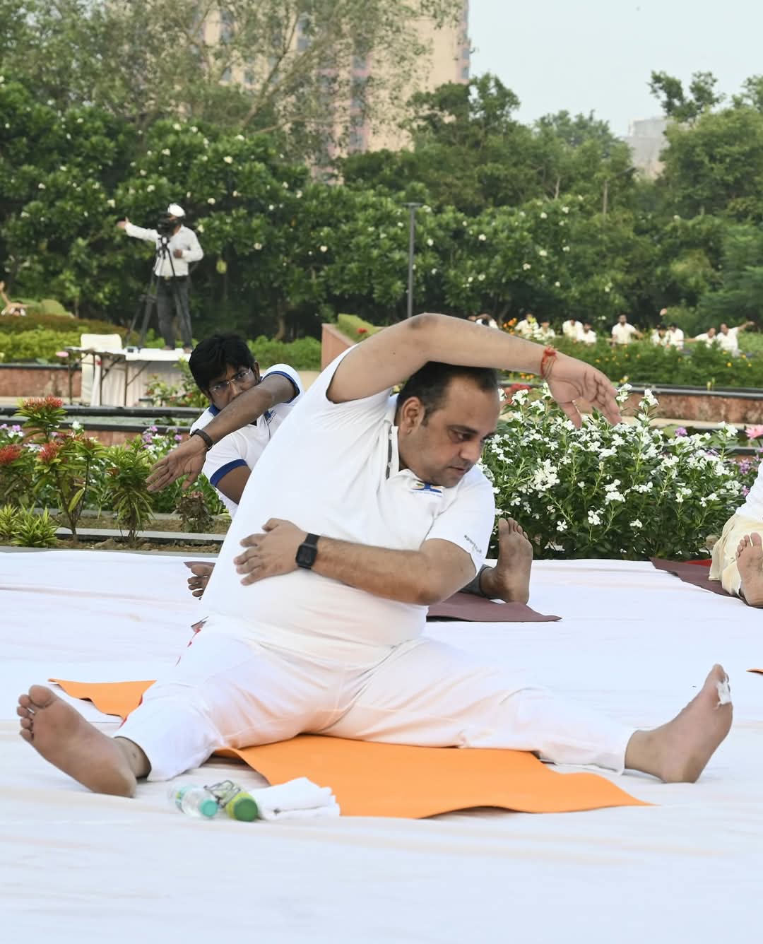 International Yoga Day: DDU पार्क में स्वास्थ्य मंत्री पंकज सिंह, बी.एल. संतोष और वीरेंद्र सचदेवा ने किया योगाभ्यास
