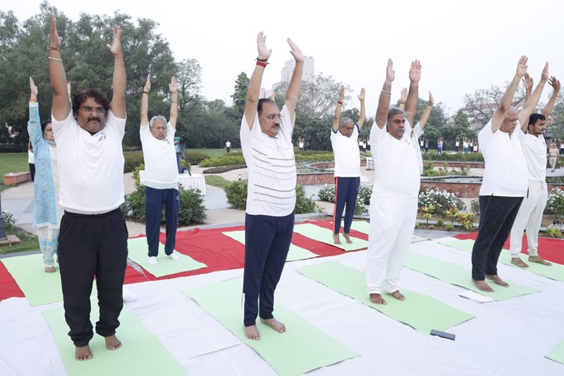 International Yoga Day: DDU पार्क में BJP के वरिष्ठ केन्द्रीय नेताओं के साथ दिल्ली भाजपा अध्यक्ष ने किया योगाभ्यास