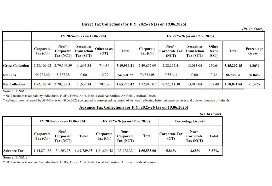 देश का सकल प्रत्यक्ष कर संग्रह 2025-26 में 4.86% बढ़ा, रिफंड वितरण में भी 58% की बड़ी वृद्धि