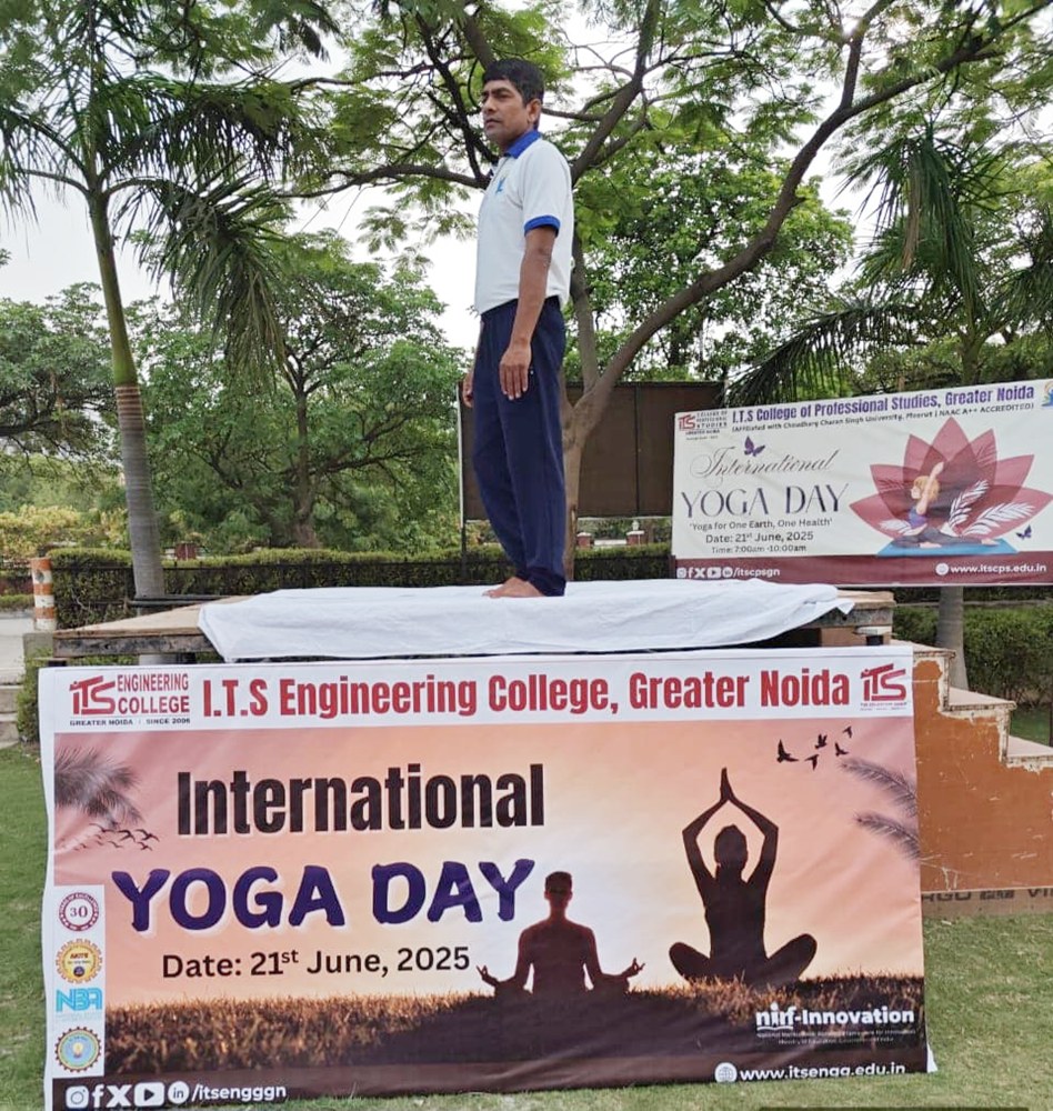 ग्रेटर नोएडा (21 जून 2025): आज आई टी एस इंजीनियरिंग कॉलेज में 11वें अंतर्राष्ट्रीय योग दिवस के अवसर पर कॉलेज के विद्यार्थियों और अध्यापकों ने प्रातःकालीन सत्र में उत्साहपूर्वक योगाभ्यास किया।