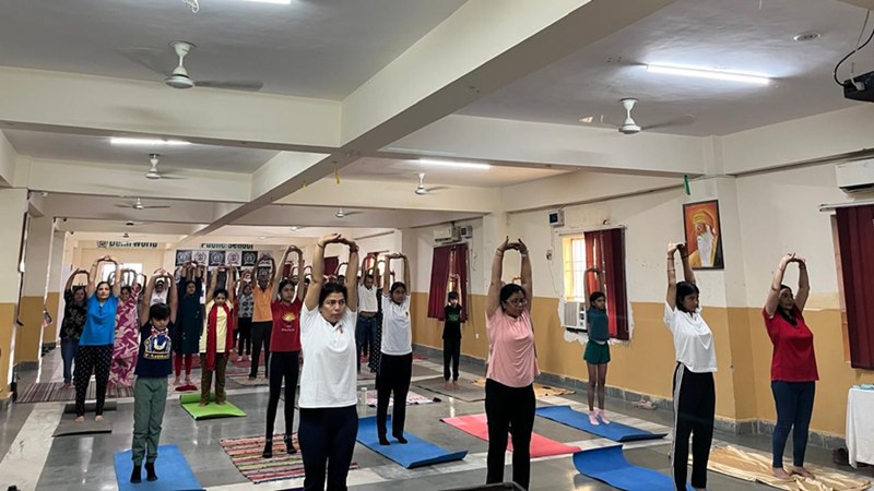 योग प्रशिक्षक पूजा सिंह (Yoga Instructor Pooja Singh) ने संस्कृत श्लोक सर्वे भवंतु सुखिनः सर्वे सन्तु निरामयाः.. योगाभ्यास आरंभ कर विभिन्न आसनों जैसे- भुजंगासन, ताड़ासन, उष्ट्रासन पवन मुक्तासन व प्राणायामों के बारे में तथा उनसे होने वाले लाभों के विषय में विस्तार पूर्वक जानकारी दी। इस सत्र में छात्र-छात्राओं, अभिभावकों तथा शिक्षकों ने उत्साहपूर्वक भाग लिया और सामूहिक योगाभ्यास किया।