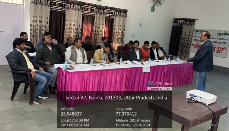 नोएडा, (19 दिसंबर 2024): नोएडा प्राधिकरण द्वारा “नोएडा आपके द्वार” कार्यक्रम के तहत सेक्टर-47 की आरडब्लूए (रेजिडेंट्स वेलफेयर एसोसिएशन) के साथ अधिकारियों की एक बैठक आयोजित की गई। इस बैठक में सेक्टरवासियों ने अपने इलाके की समस्याओं और विकास कार्यों को लेकर चर्चा की। बैठक में प्राधिकरण के वरिष्ठ अधिकारी और सेक्टर-47 के अध्यक्ष, महासचिव सहित कई लोग मौजूद थे।