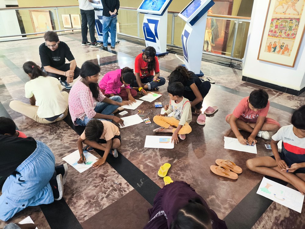 इसके पश्चात ‘कल्पना की उड़ान’ चित्रकला सत्र में बच्चों ने अपनी कल्पनाओं, संग्रहालय से प्रेरित दृश्य और अपने भविष्य के सपनों को रंगों के माध्यम से कागज़ पर उकेरा। इस रचनात्मक अभिव्यक्ति ने उनकी सोच, दृष्टिकोण और आत्म-विश्वास को नयी दिशा दी।