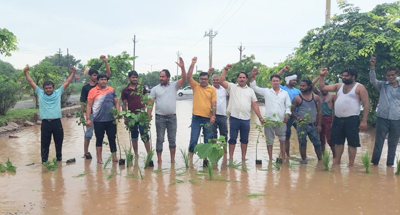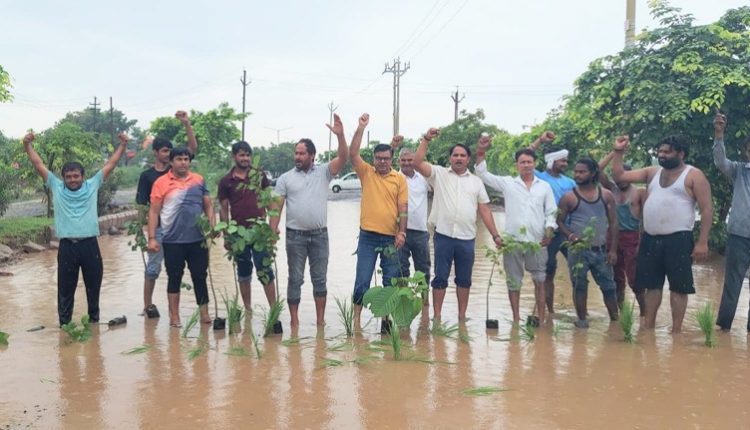 सड़क पर ‘धान रोप’ कर करप्शन फ्री इंडिया संगठन ने जताया विरोध