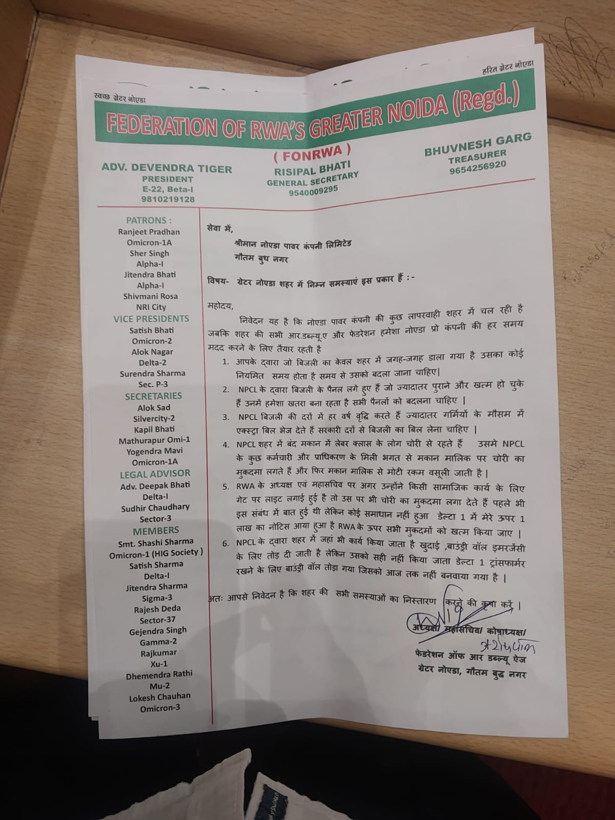 कार्यक्रम में फेडरेशन ऑफ आरडब्ल्यूएज़ ग्रेटर नोएडा (Federation of RWAs) के अध्यक्ष देवेंद्र टाइगर (Devendra Tiger) और महासचिव ऋषिपाल भाटी (Rishipal Bhati) ने क्षेत्रवासियों की ओर से बिजली आपूर्ति से जुड़ी प्रमुख समस्याओं को विस्तार से रखा। बार-बार बिजली ट्रिपिंग, कम वोल्टेज, फॉल्ट रिपेयर में देरी और उपभोक्ता शिकायतों के समय पर निस्तारण में लापरवाही जैसे मुद्दों पर गंभीर चिंता जताई गई। फेडरेशन द्वारा इन समस्याओं के स्थायी समाधान हेतु चेयरमैन को एक लिखित ज्ञापन भी सौंपा गया, जिसमें सुझाव दिया गया कि NPCL को क्षेत्रीय स्तर पर उपभोक्ताओं से संवाद बढ़ाना चाहिए और शिकायतों के निस्तारण की समयबद्ध प्रक्रिया सुनिश्चित करनी चाहिए।