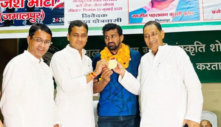 दादरी विधायक ने अंतरराष्ट्रीय स्वर्ण पदक विजेता राजेश भाटी को किया सम्मानित