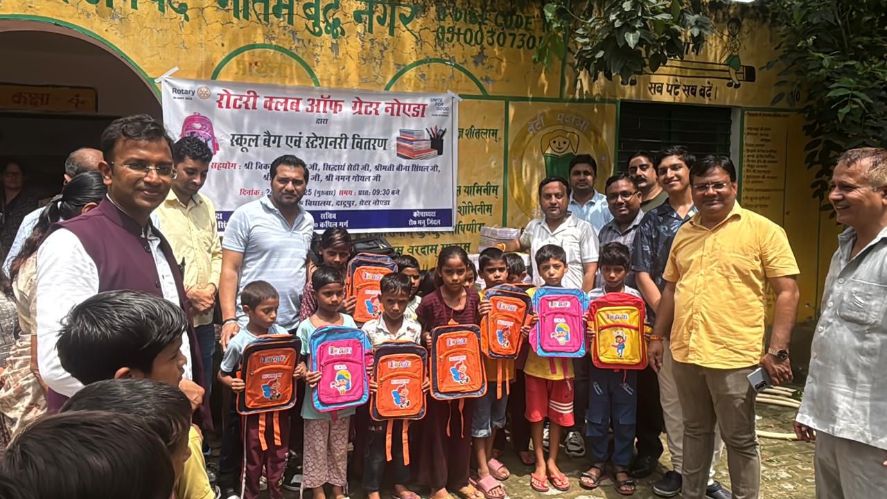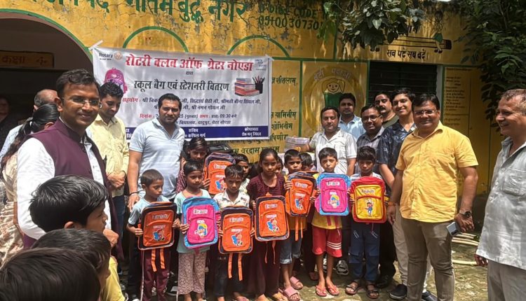 रोटरी क्लब, ग्रेटर नोएडा द्वारा स्कूल बैग व स्टेशनरी वितरण कार्यक्रम का आयोजन