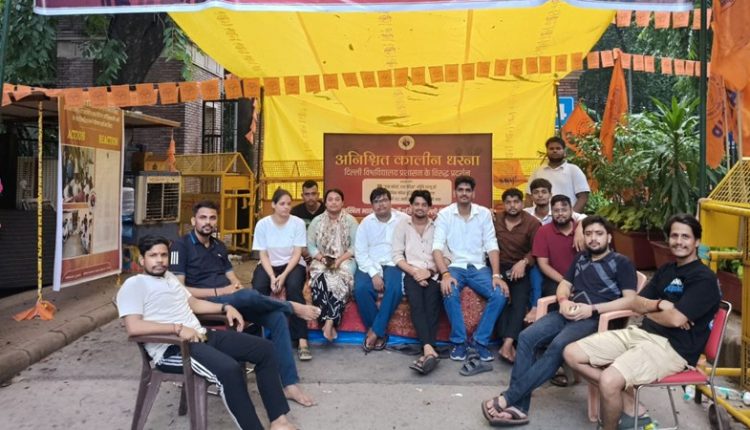 New Delhi News (27/07/2025): दिल्ली विश्वविद्यालय में छात्र हितों को लेकर चल रहा अखिल भारतीय विद्यार्थी परिषद (अभाविप) का अनिश्चितकालीन धरना शुक्रवार को छठे दिन भी पूरे जोश और संकल्प के साथ जारी रहा। कड़ी धूप और प्रतिकूल मौसम के बावजूद बड़ी संख्या में छात्र-छात्राएं धरना स्थल पर डटे रहे, वहीं विश्वविद्यालय प्रशासन की चुप्पी अब सवालों के घेरे में है।