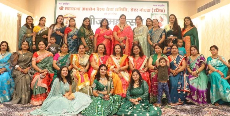 GREATER NOIDA News (28/07/2025): आज 28 जुलाई को श्री महाराजा अग्रसेन वैश्य सेवा समिति, ग्रेनो द्वारा आयोजित तीज महोत्सव (Teej Festival) वैश्य समाज की महिला सदस्यों ने श्री महाराजा अग्रसेन भवन में हर्षोल्लास से मनाया।