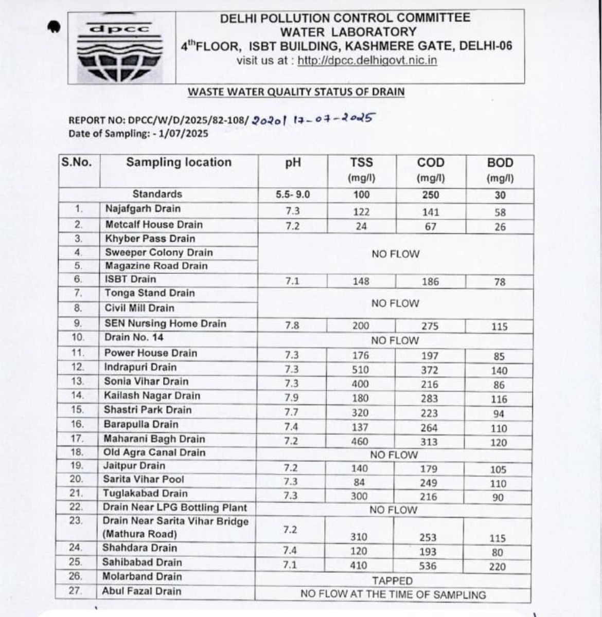 रिपोर्ट में विशेष रूप से साहिबाबाद ड्रेन को सबसे अधिक प्रदूषक बताया गया है। यह ड्रेन गाजियाबाद से निकलकर दिल्ली होते हुए यमुना में मिलती है, जिसमें गाजियाबाद और दिल्ली के कई घनी आबादी वाले इलाके तथा औद्योगिक इकाइयाँ शामिल हैं। रिपोर्ट के मुताबिक इस ड्रेन में BOD स्तर 220 mg/l और COD स्तर 536 mg/l तक पाया गया, जबकि मानक स्तर क्रमश: 30 mg/l और 250 mg/l होना चाहिए। इतना ही नहीं, इंद्रापुरी, सोनिया विहार और कैलाश नगर जैसे अन्य नाले भी खतरनाक स्तर पर प्रदूषित पाए गए हैं, जो साफ दर्शाता है कि यमुना को ‘गंदा नाला’ बनाने में किन-किन हिस्सों की भूमिका है।