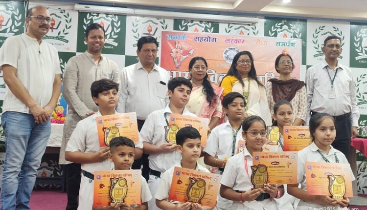 GREATER NOIDA News (08/08/2025): गुरुवार, 7 अगस्त को भारत विकास परिषद्, विवेकानन्द शाखा द्वारा DWPS, ग्रेटर नोएडा में ‘गुरु वंदन-छात्र अभिनंदन’ कार्यक्रम एवं भारत को जानो प्रतियोगिता का आयोजन किया गया। इस कार्यक्रम का उद्देश्य शिक्षकों और स्टाफ के अमूल्य योगदान का सम्मान करना और विद्यार्थियों की उपलब्धियों को सराहना था।