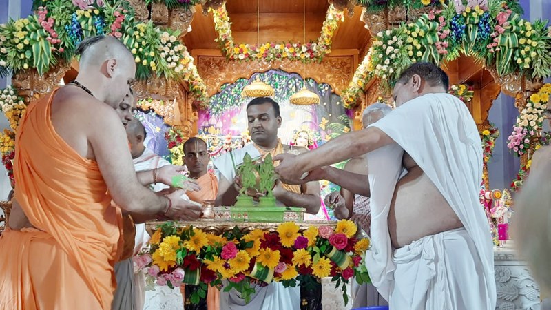 NOIDA News (09/08/2025): भगवान बलराम का जन्मोत्सव, बलराम पूर्णिमा, इस्कॉन नोएडा में श्रद्धा और भक्ति के साथ भव्य रूप से मनाया गया। शनिवार सुबह 10 बजे भावपूर्ण भजन-कीर्तन से शुरू हुए इस उत्सव में श्री कृष्ण-बलराम का दूध, दही, शहद, घी, फलों के रस और फूलों से पंचगव्य अभिषेक किया गया।