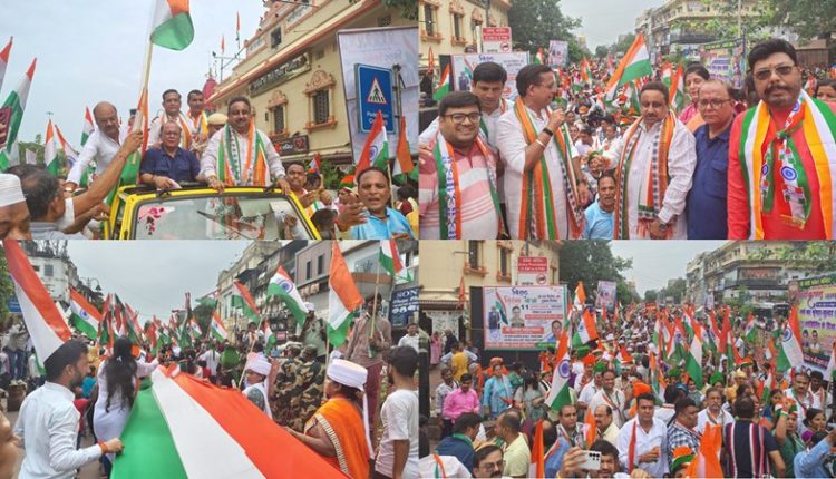 चारों ओर लहराते तिरंगों, गूंजते देशभक्ति नारों और ढोल-ताशों की धुनों ने पूरे इलाके को देश के सम्मान और एकता के उत्सव में बदल दिया। मार्ग के दोनों ओर से फूलों की वर्षा और जयघोष के साथ स्वागत हुआ, जबकि यात्रा का मुख्य आकर्षण रहा महिलाओं द्वारा गर्व से उठाया गया 100 फीट लंबा तिरंगा, जिसने पूरे वातावरण को अद्भुत ऊर्जा से भर दिया।