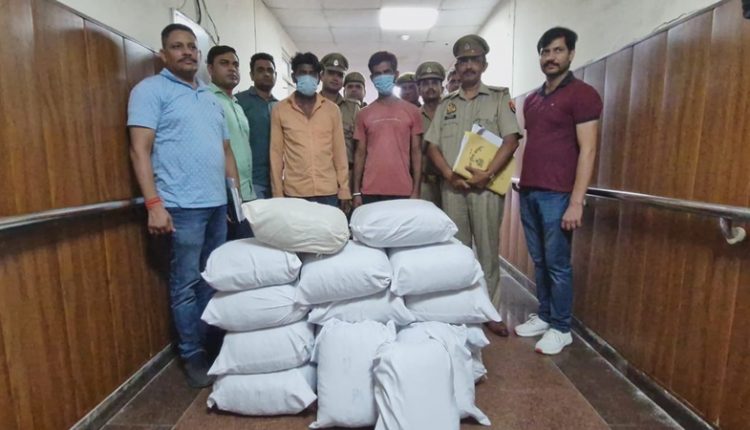 GREATER NOIDA News (19/08/2025): गौतमबुद्धनगर की थाना इकोटेक-3 पुलिस ने सोमवार को अवैध गांजा तस्करी करने वाले गिरोह के दो शातिरों को गिरफ्तार कर लिया। पुलिस ने इनके कब्जे से 01 क्विंटल 64 किलो 700 ग्राम अवैध गांजा बरामद किया, जिसकी कीमत करीब 40 लाख रुपये आंकी गई है। गांजा सप्लाई में प्रयुक्त एक ट्रक भी जब्त किया गया है।