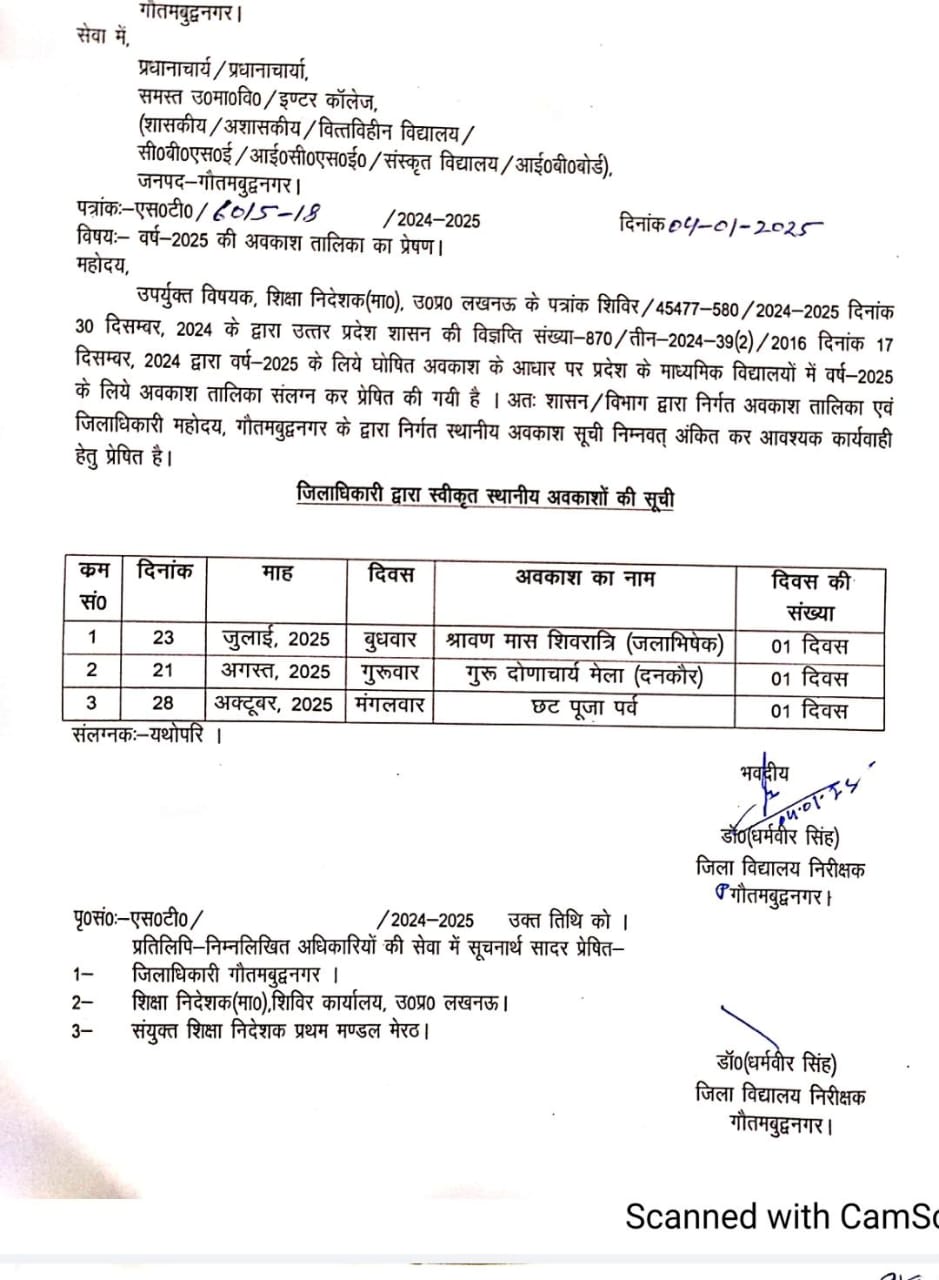 इस आधिकारिक पत्र ने सभी स्कूलों के प्रधानाचार्यों (Principals) को निर्देशित किया है कि वे अवकाश की पूर्व सूचना छात्रों और अभिभावकों तक समय से पहुंचाएं और यह सुनिश्चित करें कि छुट्टियों के कारण शैक्षणिक सत्र पर कोई नकारात्मक प्रभाव (Negative Impact) न पड़े। यह अवकाश केवल गौतमबुद्धनगर जिले के विद्यालयों के लिए ही मान्य होगा और यह प्रदेश स्तरीय अवकाशों के अतिरिक्त है। अन्य जिलों के स्कूलों पर यह आदेश लागू नहीं होगा।