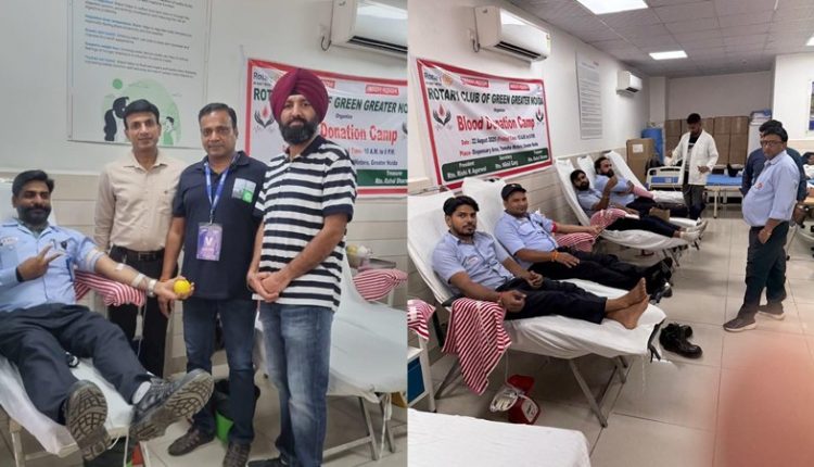 GREATER NOIDA News (22/08/2025): रोटरी क्लब ऑफ़ ग्रीन ग्रेटर नोएडा (Rotary Club of Green Greater Noida) द्वारा आज 22 अगस्त को यामाहा मोटर, ग्रेटर नोएडा में रक्तदान शिविर (Blood Donation Camp) का आयोजन किया, जिसमें 61 यूनिट रक्त एकत्रित हुआ।