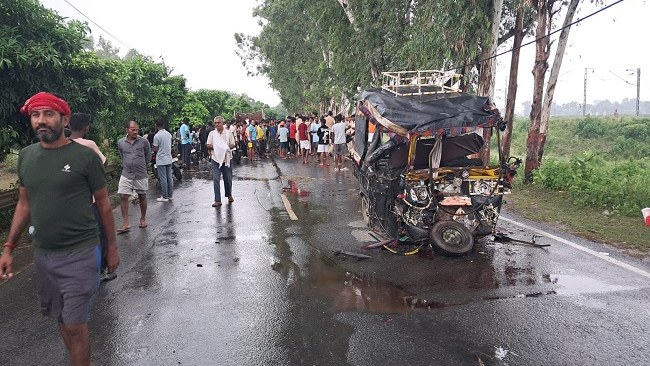 New Delhi News (23/08/2025): पटना जिले के दनियावां में शनिवार सुबह एक दिल दहला देने वाली सड़क दुर्घटना हुई, जिसमें 8 लोगों की मौके पर मौत हो गई और 5 लोग गंभीर रूप से घायल हो गए। सभी मृतक नालंदा जिले के हिलसा थाना क्षेत्र के रेडी मलामा गांव के निवासी थे और गंगा स्नान के लिए फतुहा जा रहे थे। रास्ते में अचानक एक तेज रफ्तार ट्रक ने उनके ऑटो को जोरदार टक्कर मार दी। टक्कर इतनी भयानक थी कि ऑटो के परखच्चे उड़ गए और मौके पर ही चीख-पुकार मच गई।