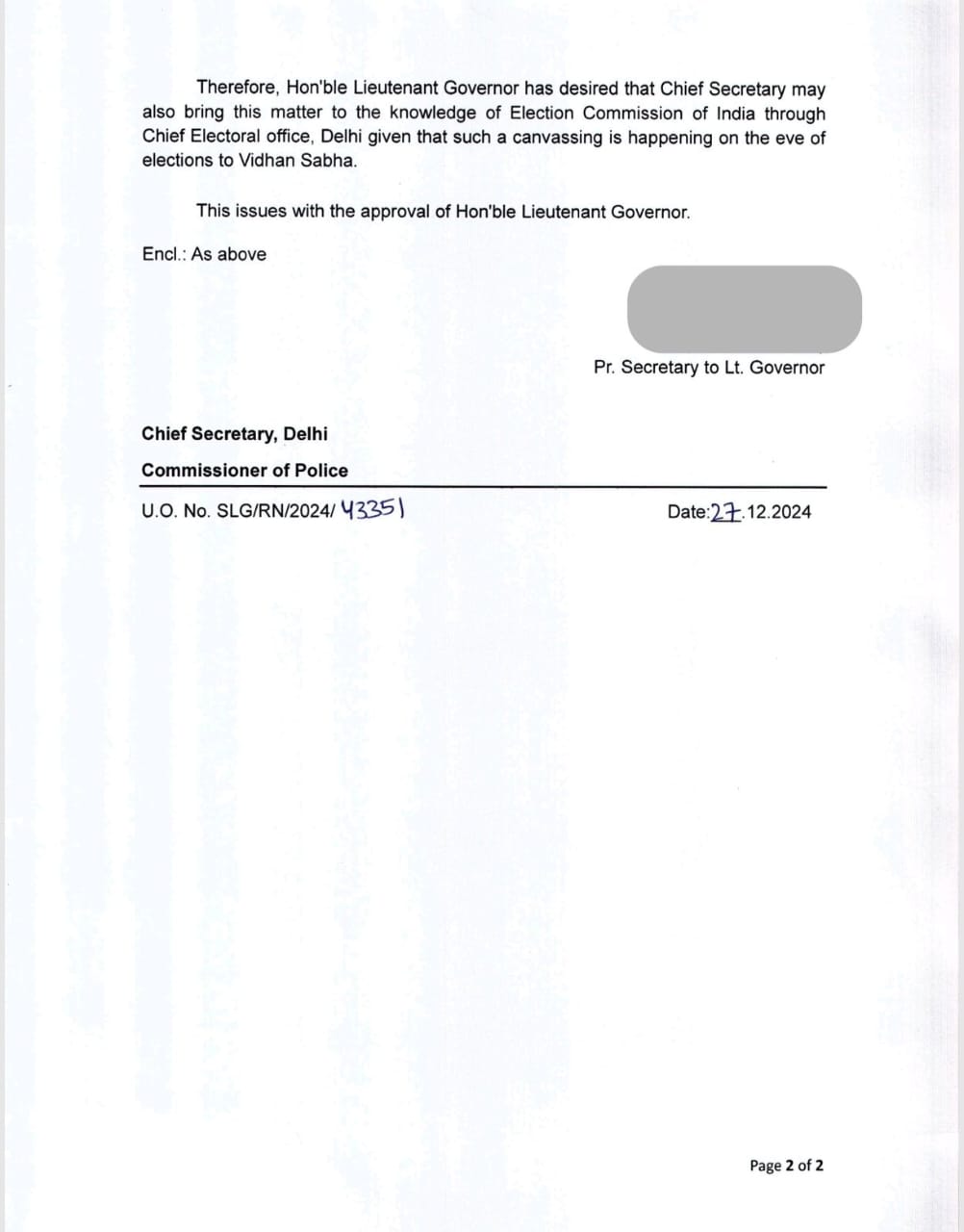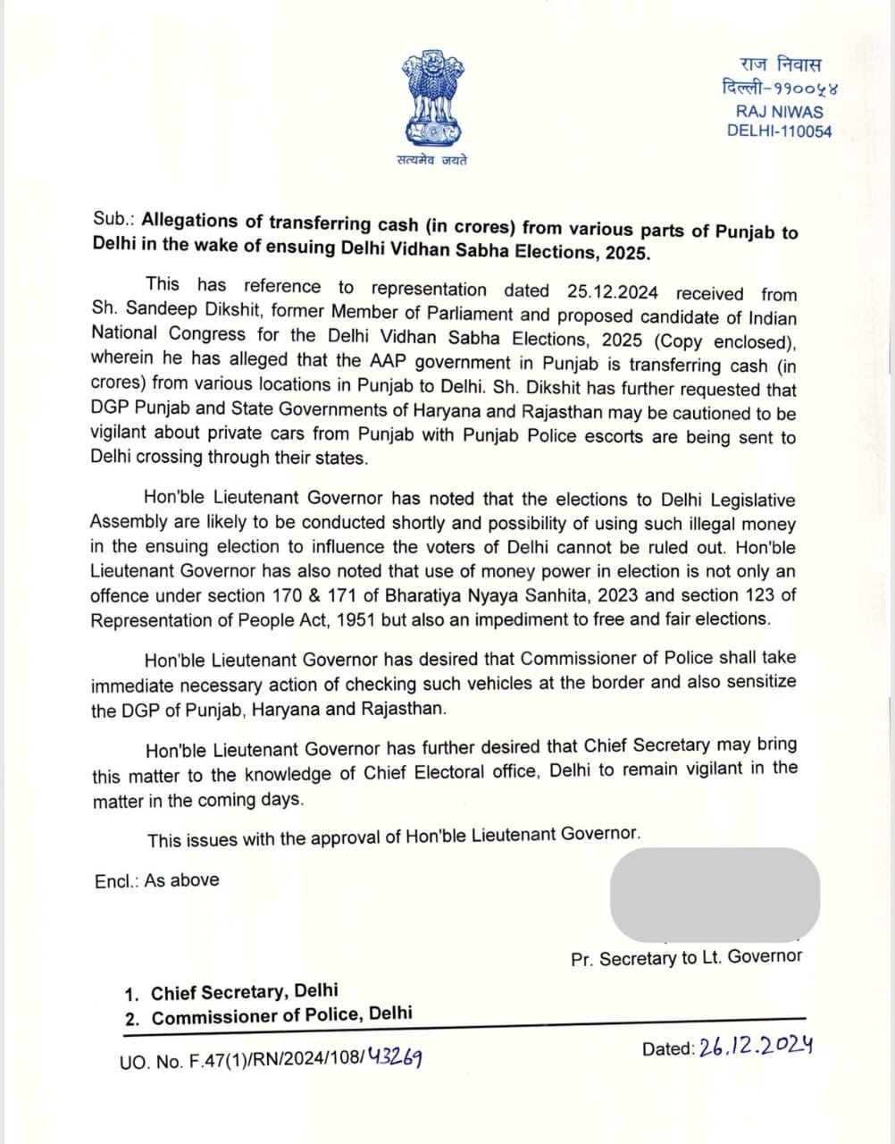 उपराज्यपाल वीके सक्सेना ने अपने आदेश में कहा है कि कुछ गैर-सरकारी लोग महिलाओं का व्यक्तिगत डेटा एकत्र कर रहे हैं और दावा कर रहे हैं कि यह योजना लागू होने पर महिलाओं को ₹2100 मासिक भत्ता दिया जाएगा। उन्होंने पुलिस आयुक्त को निर्देश दिया है कि इस मामले में कार्रवाई सुनिश्चित की जाए और फर्जी शिविर आयोजित करने वालों पर कानून के तहत कड़ी कार्रवाई की जाए।
