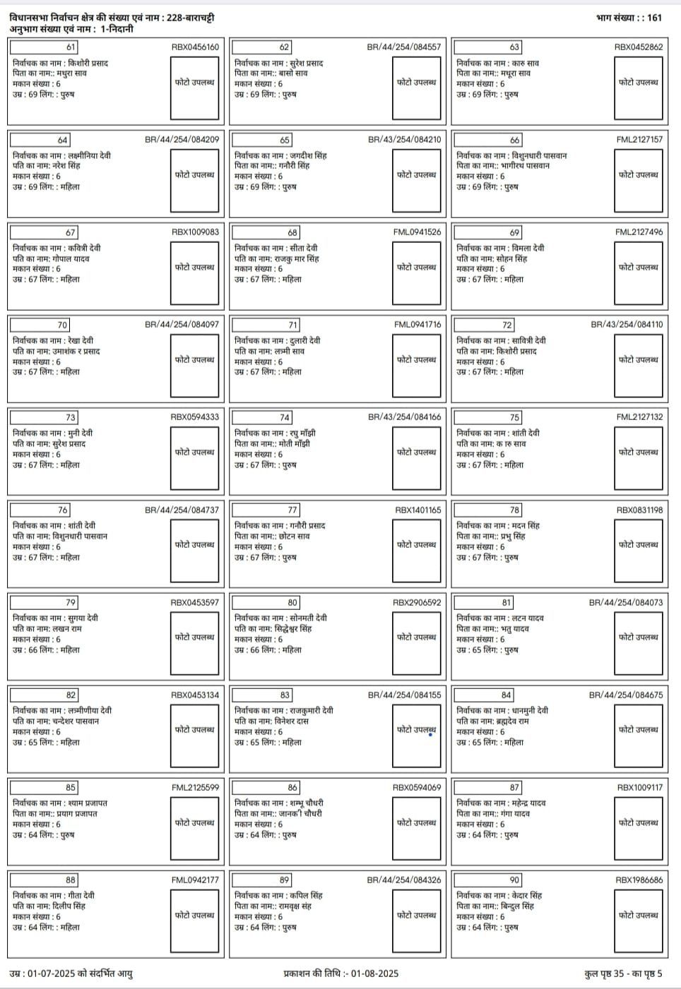 Bihar News (28 August 2025): बिहार में चुनाव आयोग की कार्यप्रणाली पर कांग्रेस पार्टी ने गंभीर सवाल खड़े किए हैं। कांग्रेस ने आरोप लगाया है कि गया जिले के बोधगया प्रखंड के निदानी गाँव (बूथ संख्या 161, बाराचट्टी विधानसभा क्षेत्र) से चौंकाने वाला मामला सामने आया है। आधिकारिक वोटर लिस्ट के मुताबिक गाँव के मकान नंबर-6 में 947 वोटर दर्ज हैं। यानी पूरे गाँव को चुनाव आयोग ने एक काल्पनिक मकान में समेट दिया है। निदानी गाँव में सैकड़ों घर और परिवार हैं, लेकिन मतदाता सूची में सभी को एक ही पते से जोड़ दिया गया है। कांग्रेस पार्टी ने इसे चुनावी धांधली का बड़ा उदाहरण बताते हुए सवाल उठाए हैं कि आखिर BLO ने किस तरह का डोर-टू-डोर वेरिफिकेशन किया? वास्तविक मकान नंबर क्यों हटा दिए गए? और इस गड़बड़ी से किसे राजनीतिक फायदा पहुँचाया जा रहा है?